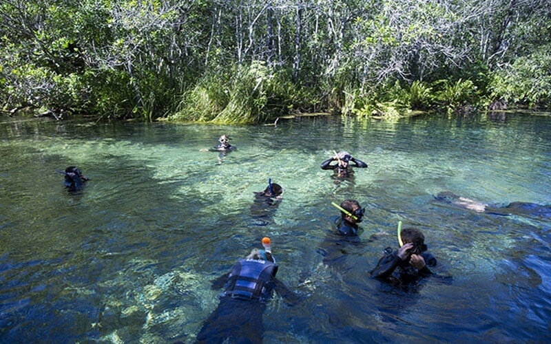 - Flutuação na nascente com visibilidade incrível e formação de tufas calcárias;